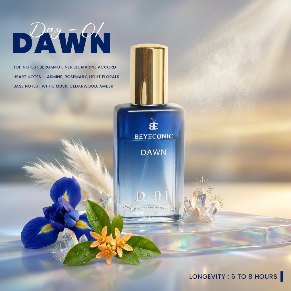 Dawn opens bright and refreshing, then melts into a smooth aromatic heart that stays modern, polished, and easy to wear. The dry-down is softly woody and musky, leaving a premium trail that feels effortless yet unforgettable.